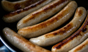 Saucisse Hénaff rôtie sur sa crème de champignons